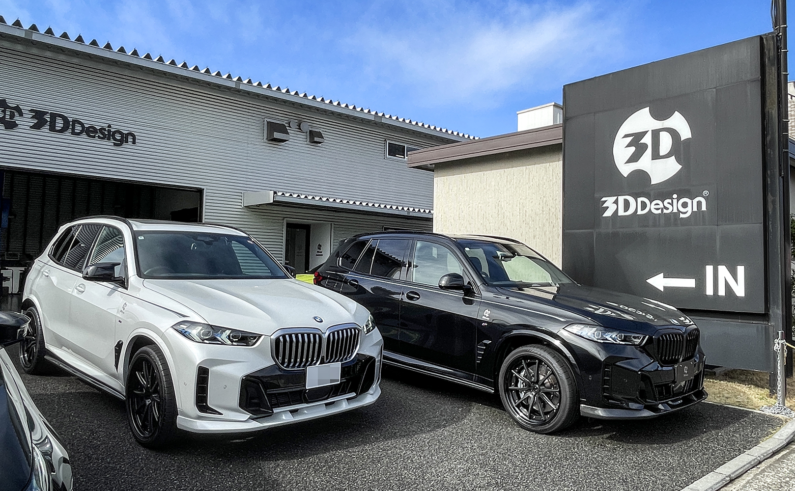 ウレタンリップ装着のホワイトのBMW X5 G05は7日まで、カーボンエアロ装着のブラックの方は8日まで展示してます。